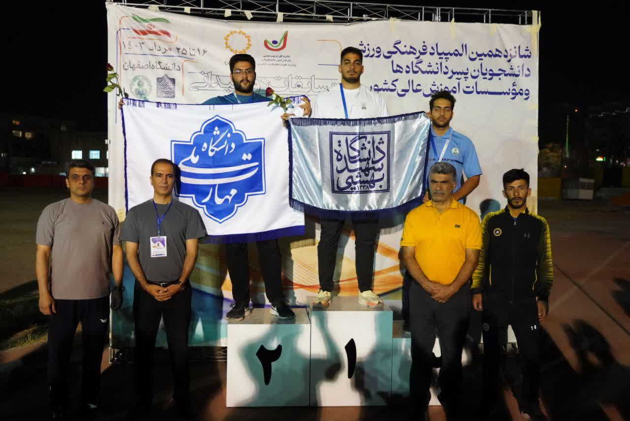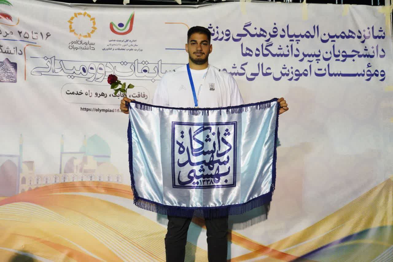 در آخرین ماده از رقابتهای دو و میدانی پسران، حسین رشمه کریم دانشجوی کارشناسی رشته علوم ورزشی در ماده پرتاب دیسک در پرتاب پنجم خود با ثبت رکورد بسیار خوب ۴۶متر و ۲۳ سانتیمتر، ضمن شکستن رکورد خود در مسابقات منطقه، توانست یک طلای باارزش را برای دانشگاه شهید بهشتی کسب کند تا تیم دو و میدانی پایان خوشی را در رقابتها داشته باشد.